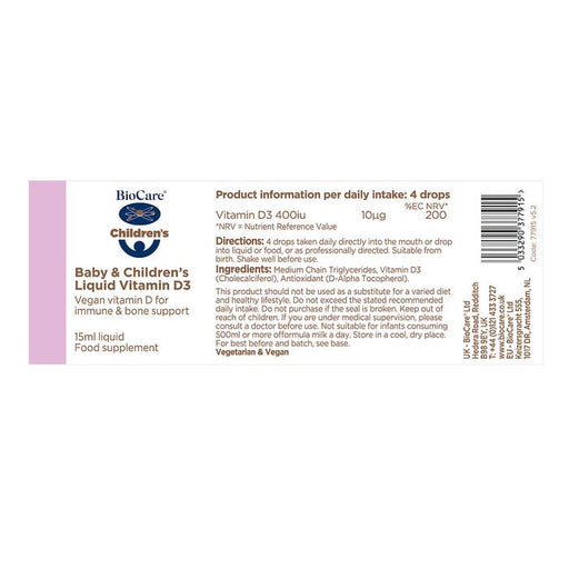 View full detailsBiocare Baby and Children's Liquid Vitamin D3 15ml